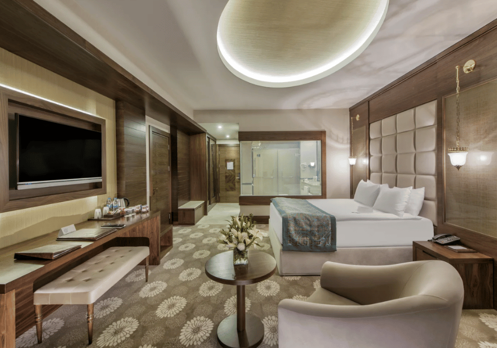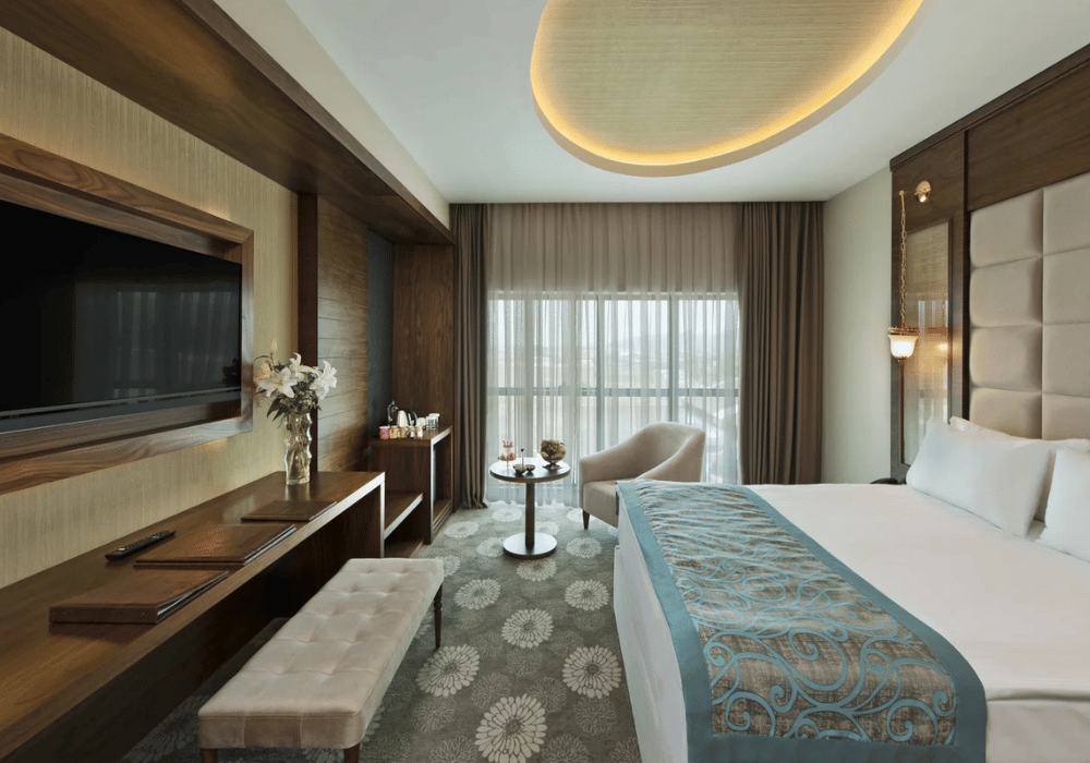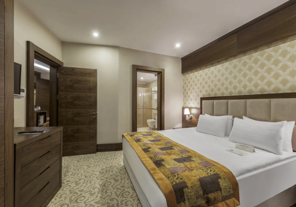 Deluxe Oda:20-26 m² büyüklüğündedir. 1 çift kişilik yatak bulunmaktadır. Deluxe odalarda maksimum 2 yetişkin konaklayabilir. Ek yatak konulmamaktadır. Küvet ve balkon bulunmamaktadır. Havuza bakan oda bulunmamaktadır. Termal su bulunmamaktadır.(Konaklama tipi eşli şeklinde olmalıdır. 2 bay satışı yapılmamaktadır.). Duşa kabinlidir Deluxe Superior Oda: 32-39 m² büyüklüğündedir. French Bed, Twin Bed veya Single ve French Bed bulunmaktadır. Küvet ve duşa kabin bulunan odalardır. Bu oda tipinin genelinde fransız balkon bulunmaktadır. Termal su bulunmamaktadır. Maksimum 3 yetişkin veya 2 yetişkin ile birlikte 2 çocuk konaklayabilir. Banyosu özel tasarlanmış engelli odaları da bu kategori içerisinde yer almaktadır. Corner Suite Oda:42-47 m² büyüklüğünde küvet, duşa kabin ve termal su bulunan odalarımızdır. French bed ve oturma grubu bulunmaktadır. Corner odalarda maksimum 2 yetişkin ile birlikte 2 çocuk konaklayabilir. Havuz manzaralı oda ve balkon bulunmamaktadır. Asansöre en uzak odalardır. Odalar tesisin yan tarafına bakmaktadır.Junior Suite Oda:50 m² büyüklüğünde küvet, duşakabin ve termal su bulunan odalarımızdır. French bed ve oturma grubu bulunmaktadır. Junior odalarda maksimum 2 yetişkin ile birlikte 2 çocuk konaklayabilir. Havuz manzaralı oda ve balkon bulunmamaktadır. Asansöre yakın odalardır 4 adet.Family Suite:56-67 m² büyüklüğünde, 2 banyolu, küvet, duşa kabin ve termal su bulunan odalardır. Ebeveyn yatak odası ve salondan oluşmaktadır. Odada French Bed ve Twin Bed ve koltuk takımı bulunmaktadır. Family Suite odalarda maksimum 4 kişi konaklayabilmektedir. Sadece girişteki banyoda küvet ve termal su bulunmaktadır. Honeymoon Suite68-80 m² büyüklüğünde banyosunda sauna, oda içerisinde termal küvet ve oturma grubu bulunan odalardır. Maksimum 2 yetişkin konaklayabilmektedir. French balkon bulunmaktadır. Sultan Suit:Dubleks olarak tasarlanan Sultan Suite’ler 172 m² genişliğindedir, termal su,küvet, sauna, oturma grubu bulunmaktadır. Üst katta French Bed alt katta koltuk takımı bulunmaktadır.• Sadece suite odalarda termal su vardır.• Sigara içilebilen odalar 1.katta yer almaktadır.• 3 tane engelli odası bulunmaktadır. Deluxe superior oda kategorisindedir.• Honeymoon Suit parke, Sultan Suit mermer, diğer oda tipleri halı zemindir.• Deluxe Superior oda kategorisinde connection oda bulunmaktadır.