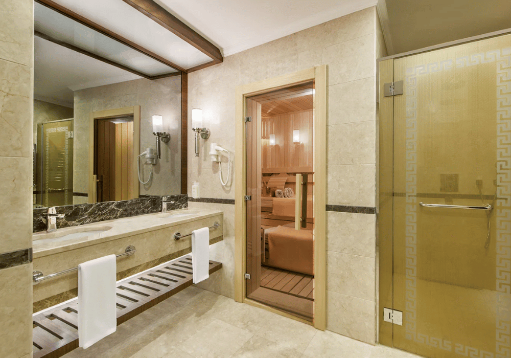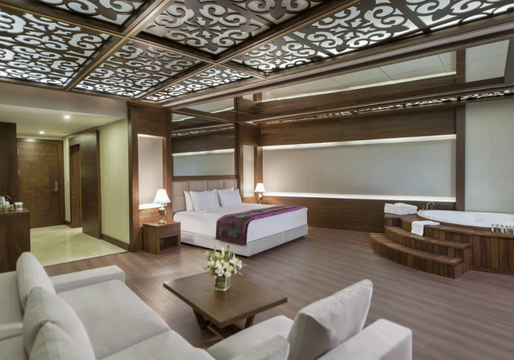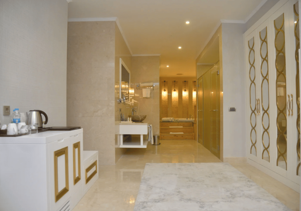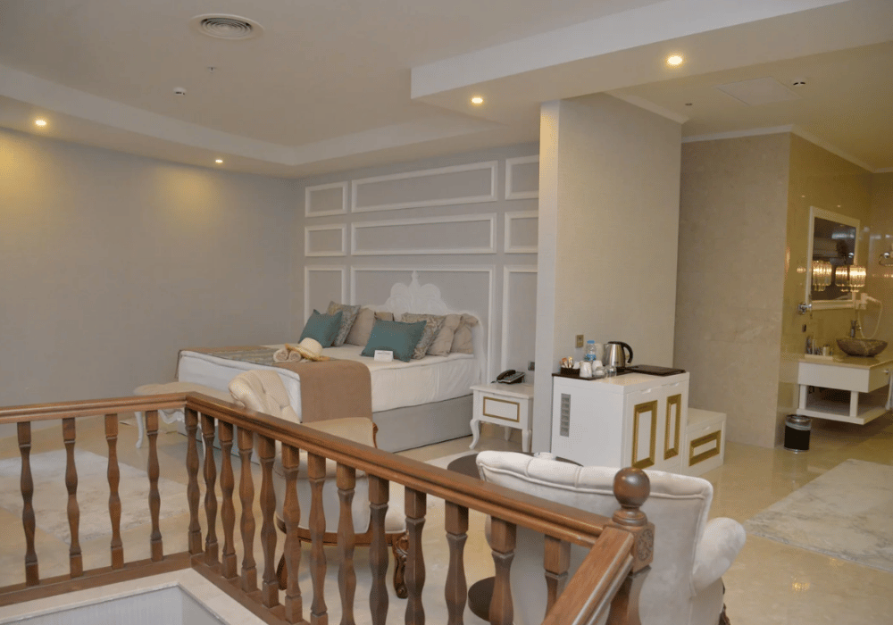 Dubleks olarak tasarlanan Sultan Suite’ler 172 m² genişliğindedir, termal su,küvet, sauna, oturma grubu bulunmaktadır.