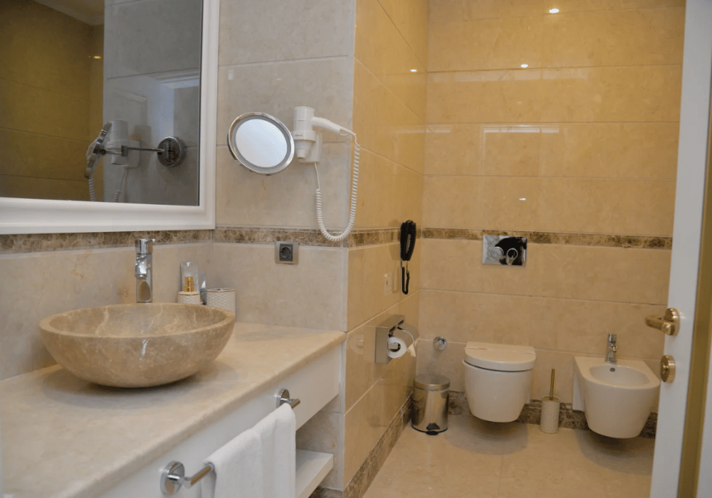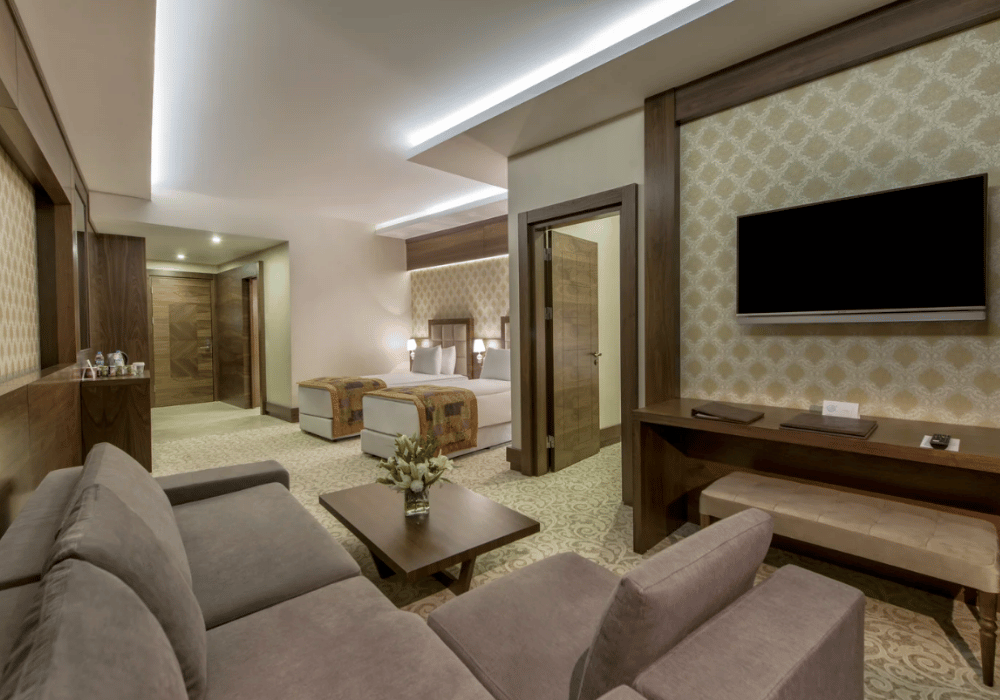 42-47 m² büyüklüğünde küvet, duşakabin ve termal su bulunan odalarımızdır. French bed ve oturma grubu bulunmaktadır.