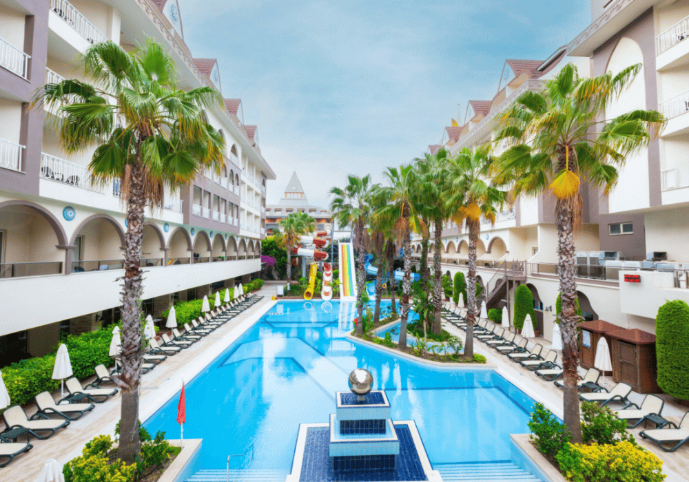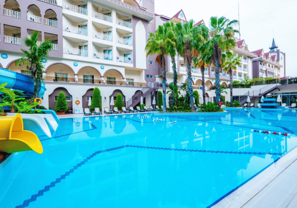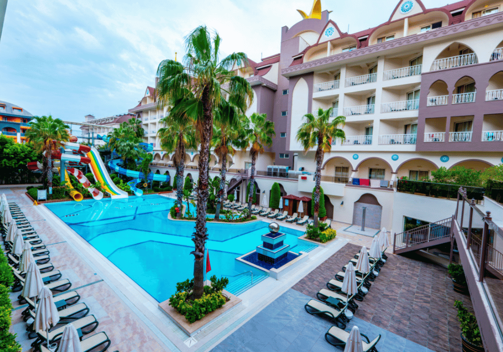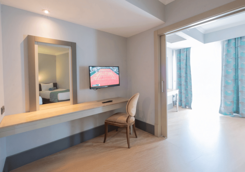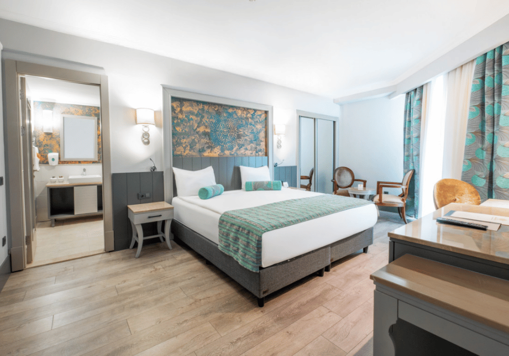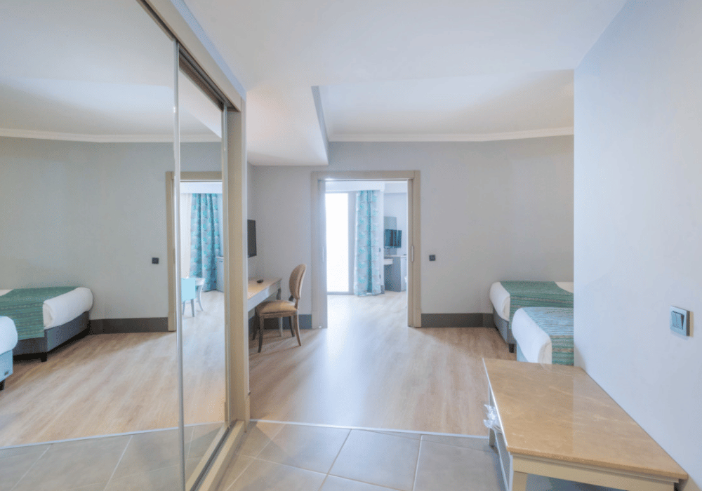 28 m² oda + teras 10 m² genişliğindedir. Jakuzili ve teraslı, havuz manzaralı odadır.